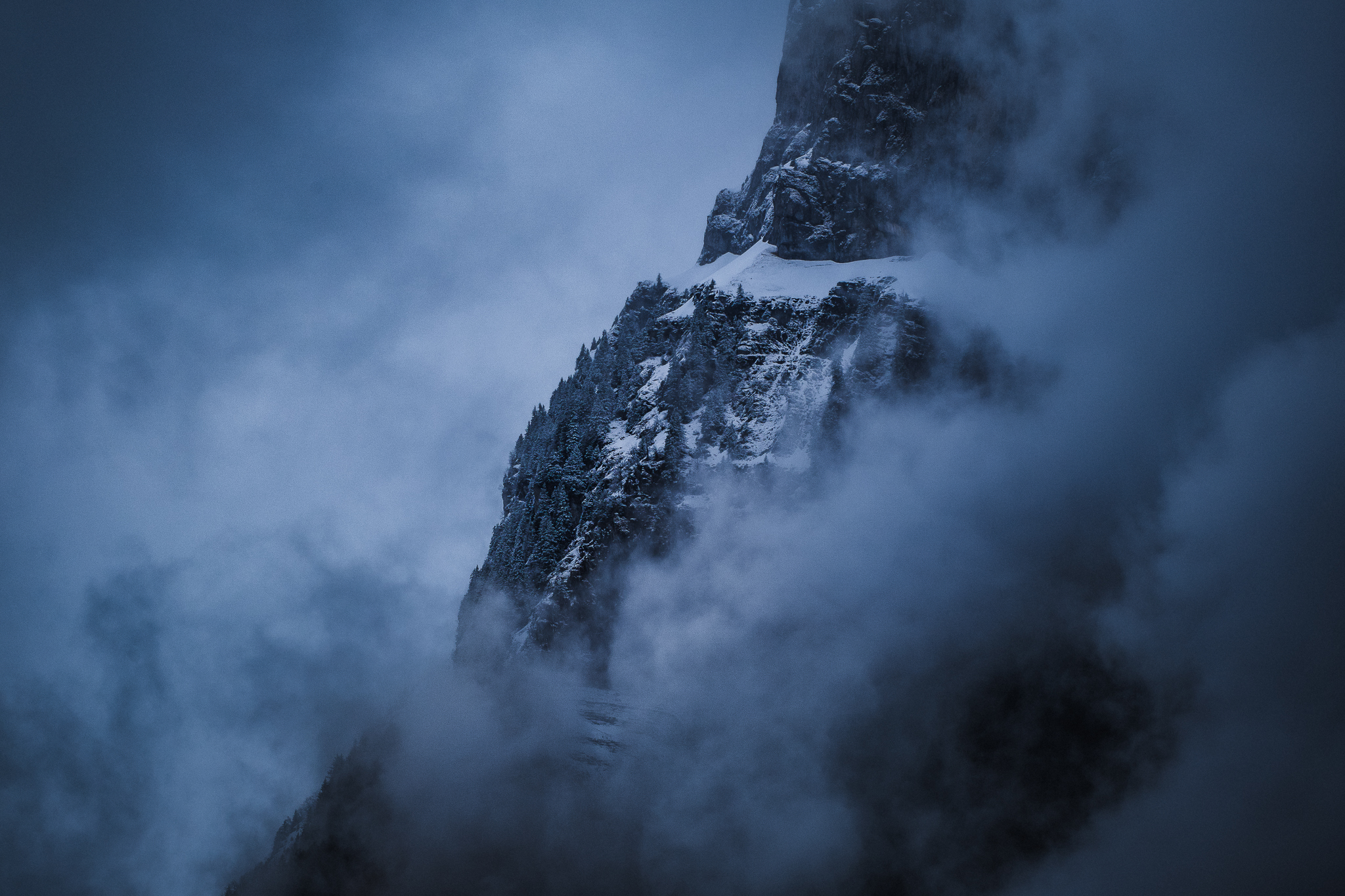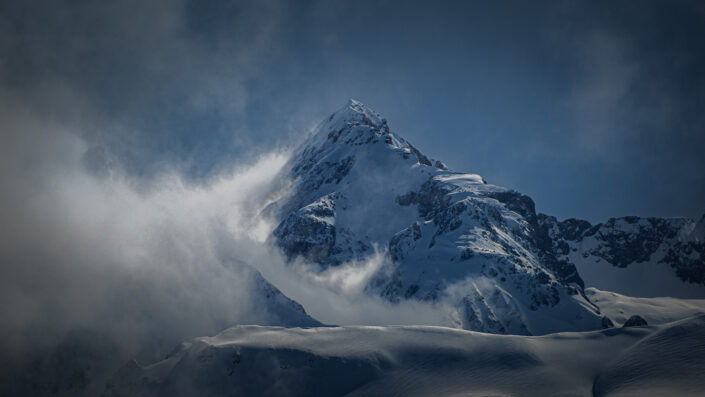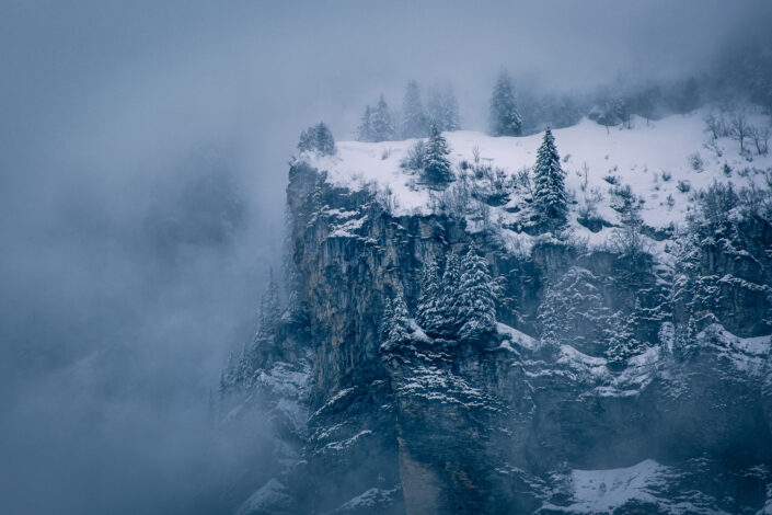 Voilées de brume, sculptées par le vent et le froid, ces montagnes semblent surgir d’un autre monde. Elles ne sont ni tout à fait réelles, ni complètement imaginaires.